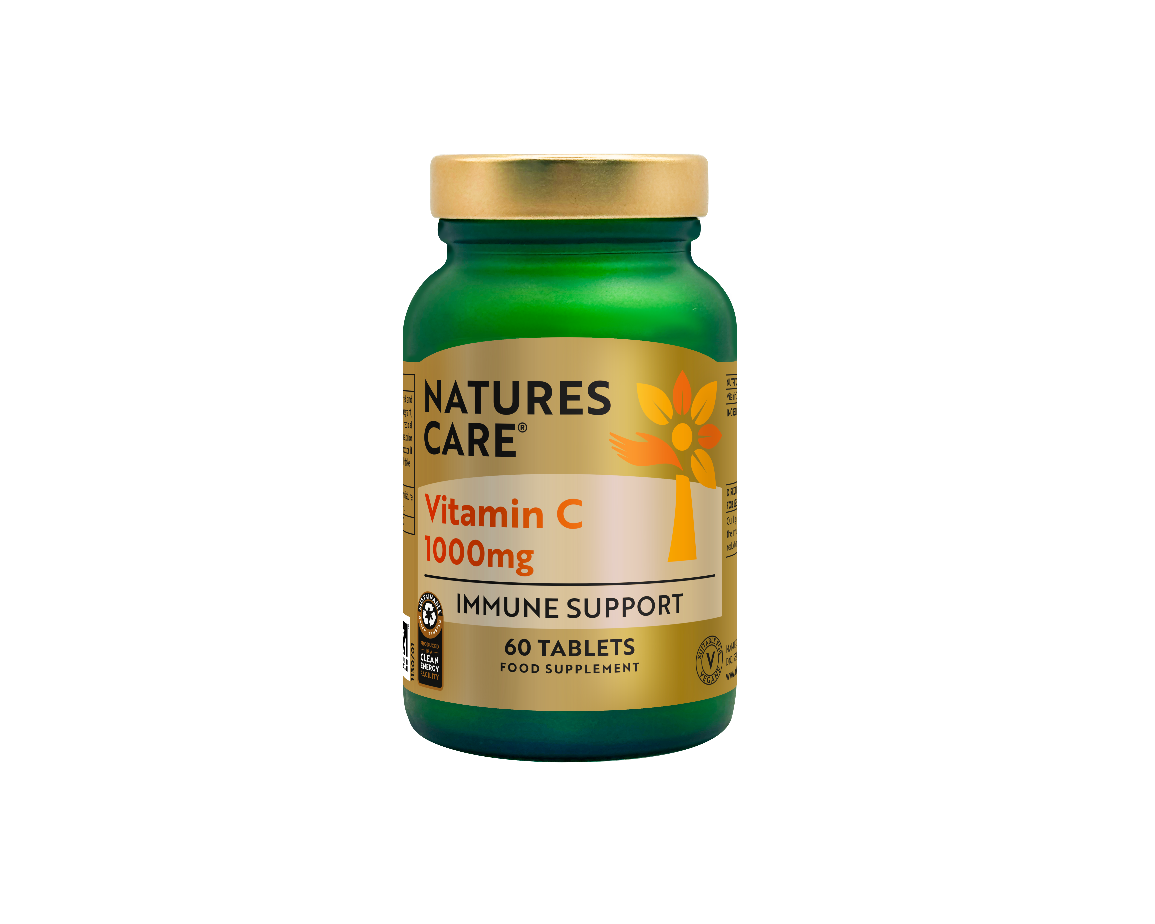 Our high dosage Natures Care Vitamin C provides support to the normal function of the immune system, protection of cells from oxidative stress, and reduction of tiredness and fatigue. Perfect for those looking for daily boost in immune support and energy.