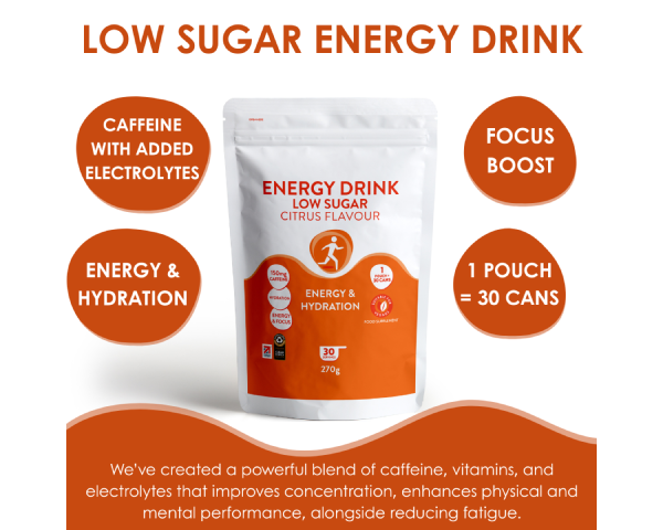 Our energy drink mix combines great taste with essential electrolytes, boosting both energy and hydration. Each pouch contains our special “fizz formula” that, when added to water, creates a flavourful fizzing drink. One pouch is equivalent to 30 cans of energy drinks providing the ideal choice for anyone needing a refreshing energy boost throughout the day without buying daily energy drinks!