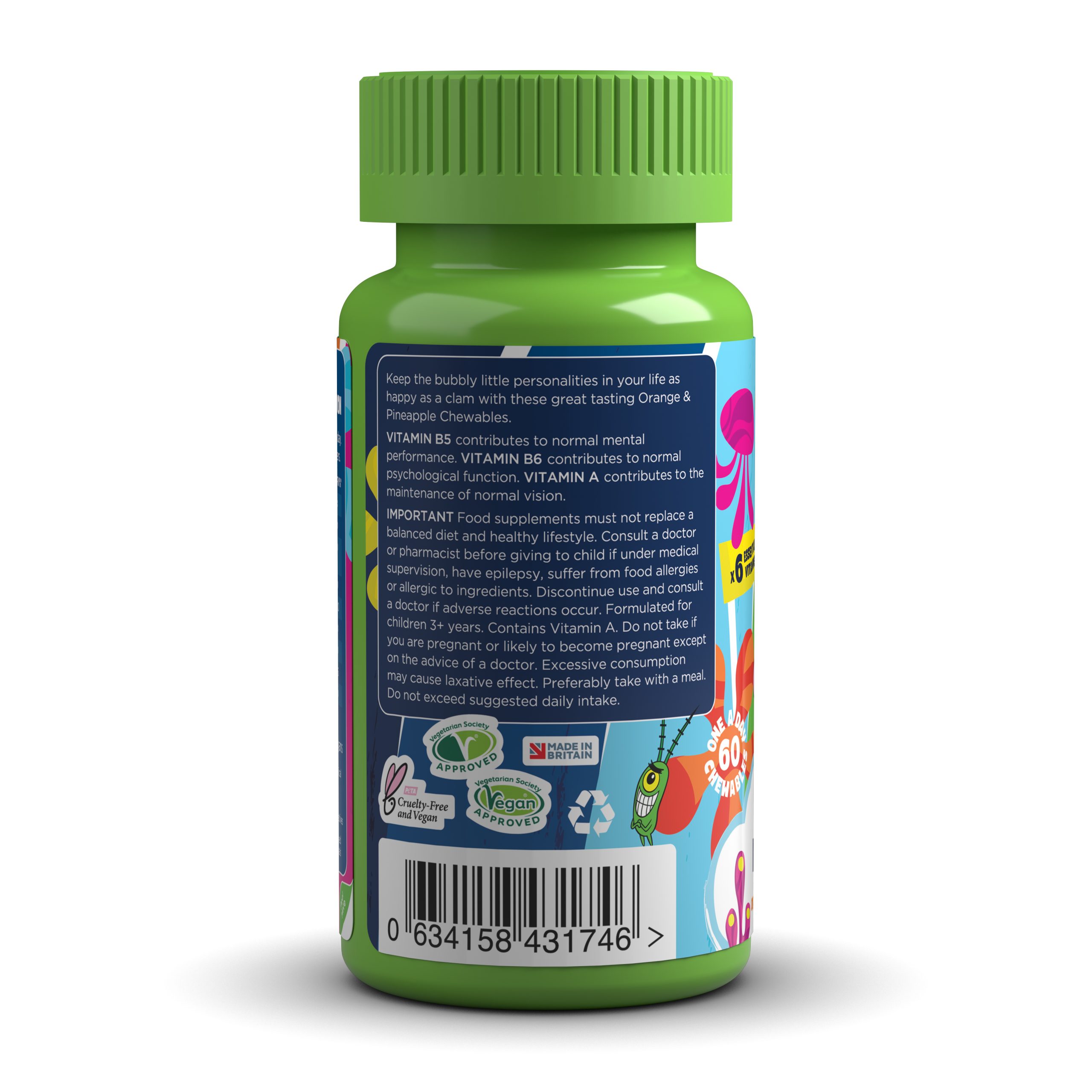 Our scrummy brain food formula chewables have been specially formulated with 6 essential vitamins and minerals to support the normal mental performance of kids.