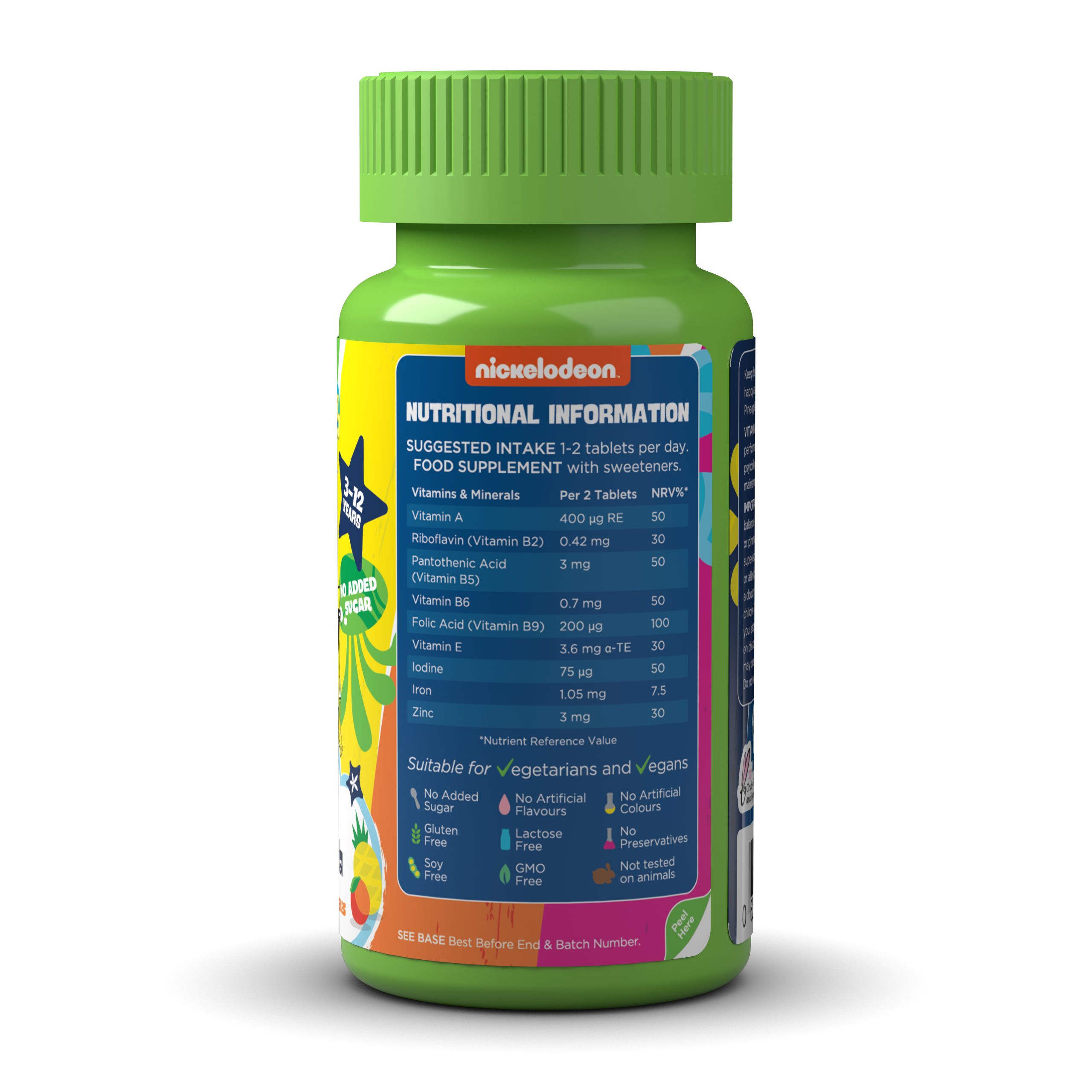 Sweeteners (Isomalt, Xylitol, Sucralose), Glazing Agents (Hydroxypropylmethylcellulose, Calcium Carbonate, Polydextrose, Medium Chain Triglycerides), Anti-Caking Agents (Magnesium Stearate, Silicon Dioxide), Orange Juice Powder, Pineapple Juice Powder, Natural Orange Flavouring, Natural Pineapple Flavouring, Zinc Citrate, Acidity Regulator (Sodium Citrate), Acid (Citric Acid), Retinyl Acetate, D-Alpha-Tocopheryl Acid Succinate, Natural Colourants (Curcumin, Beetroot Red), Ferrous Fumarate, Calcium D-Pantothenate, Pyridoxine Hydrochloride, Riboflavin, Folic Acid, Potassium Iodide.