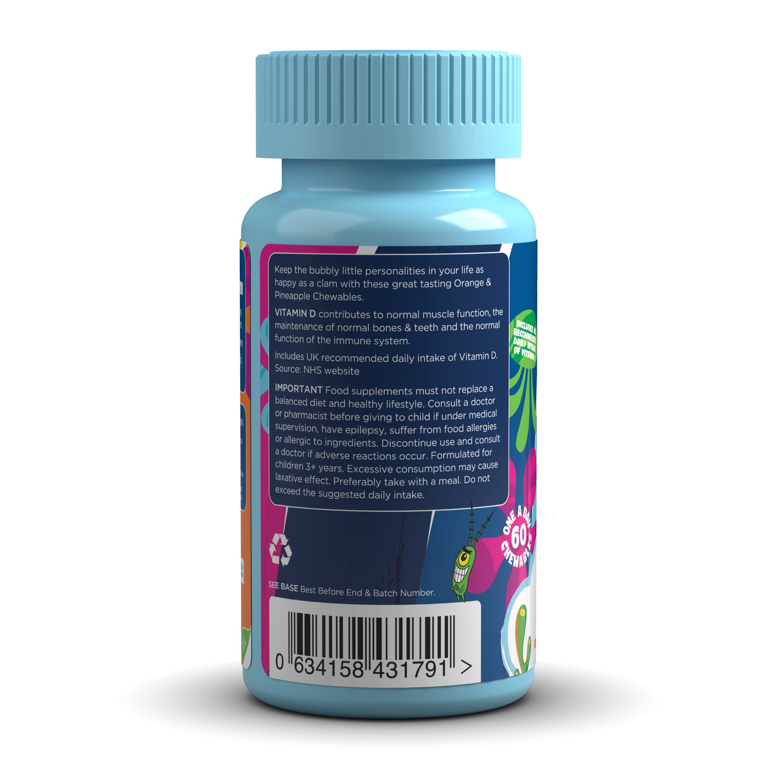 The easy way to get the recommended daily intake of vitamin D3, all in a scrummy Orange & Pineapple flavoured Chewable! Expertly formulated to support the normal growth and development of kids aged 3-12 years.