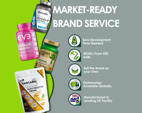 Our market-ready brand service gives businesses access to a range of fully developed, retail-ready health and wellness brands.