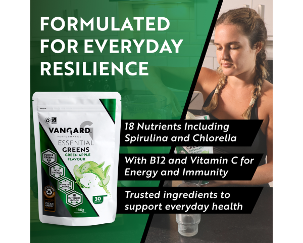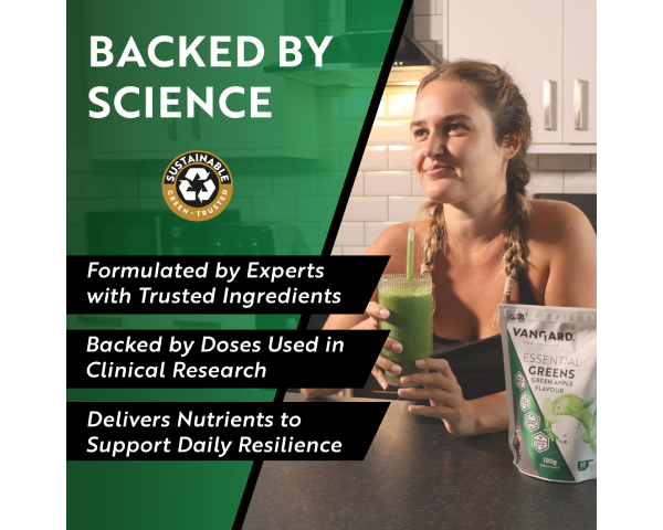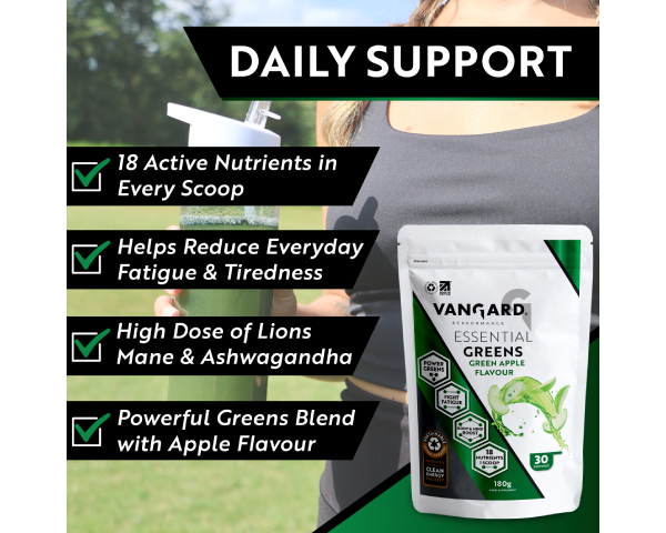 Vangard Performance Essential Greens is formulated to lead in greens and superfoods, our blend includes in demand ingredients such as lions mane, ashwagandha and turmeric at optimal doses for a powerful boost.