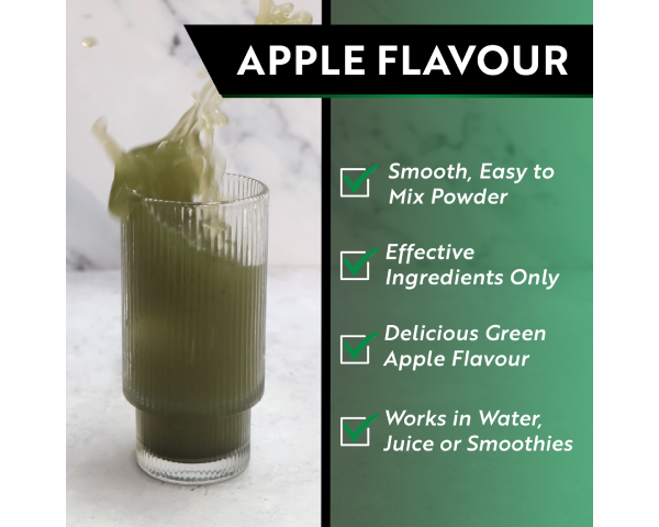 Pea Protein Isolate, Inulin, Apple Juice Powder, Natural Flavouring, Acid (Malic Acid), Magnesium Citrate, Organic Spirulina Powder, Alfalfa Grass Powder, Kale Powder, Lion’s Mane Mushroom Extract, Sweetener (Sucralose), Watercress Extract, Natural Beta-Carotene, Ashwagandha Extract, Organic Turmeric powder, Broccoli Sprout Extract, Calcium D-Pantothenate, Green Tea Extract, Spinach Extract, Pyridoxine Hydrochloride, Folic Acid.
