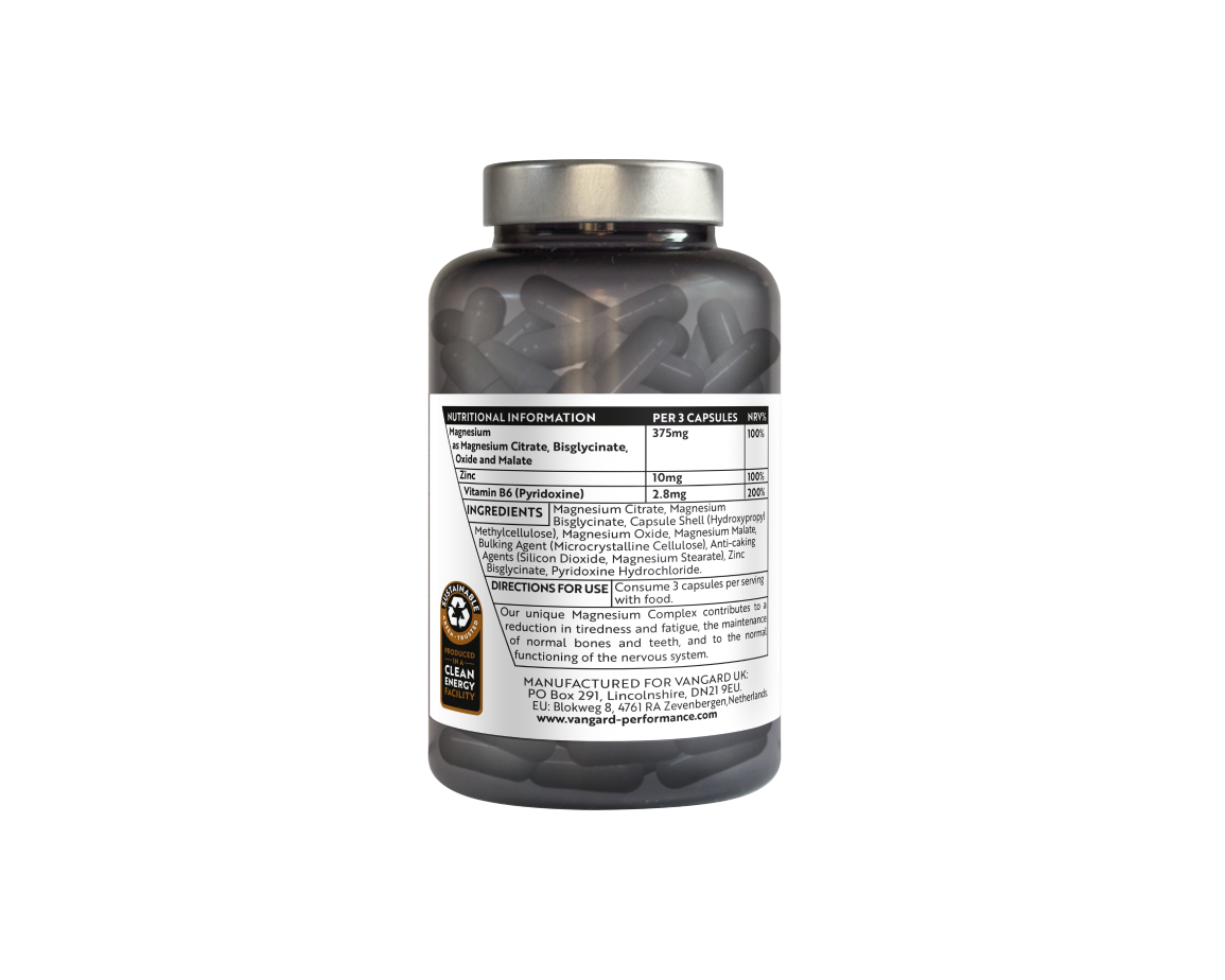 Unlock the power of our Vangard Magnesium Complex, a comprehensive magnesium supplement with a 4 in 1 blend to help support sleep, muscle relaxation and bone health, as well as boosting energy and reducing fatigue. Our complex consists of a unique blend of 4 high bioavailable sources of magnesium.